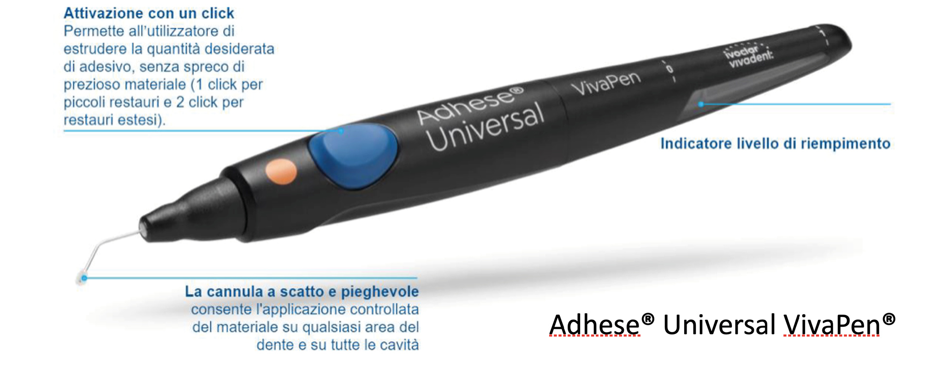 Ivoclar Vivadent presenta: Adhese® Universal, l’adesivo monocomponente, fotopolimerizzabile per procedure di bonding dirette ed indirette, adatto a tutte le tecniche di mordenzatura, è l’unico adesivo universale disponibile nell’efficiente formato VivaPen®.