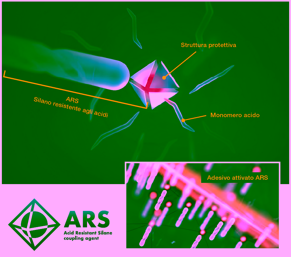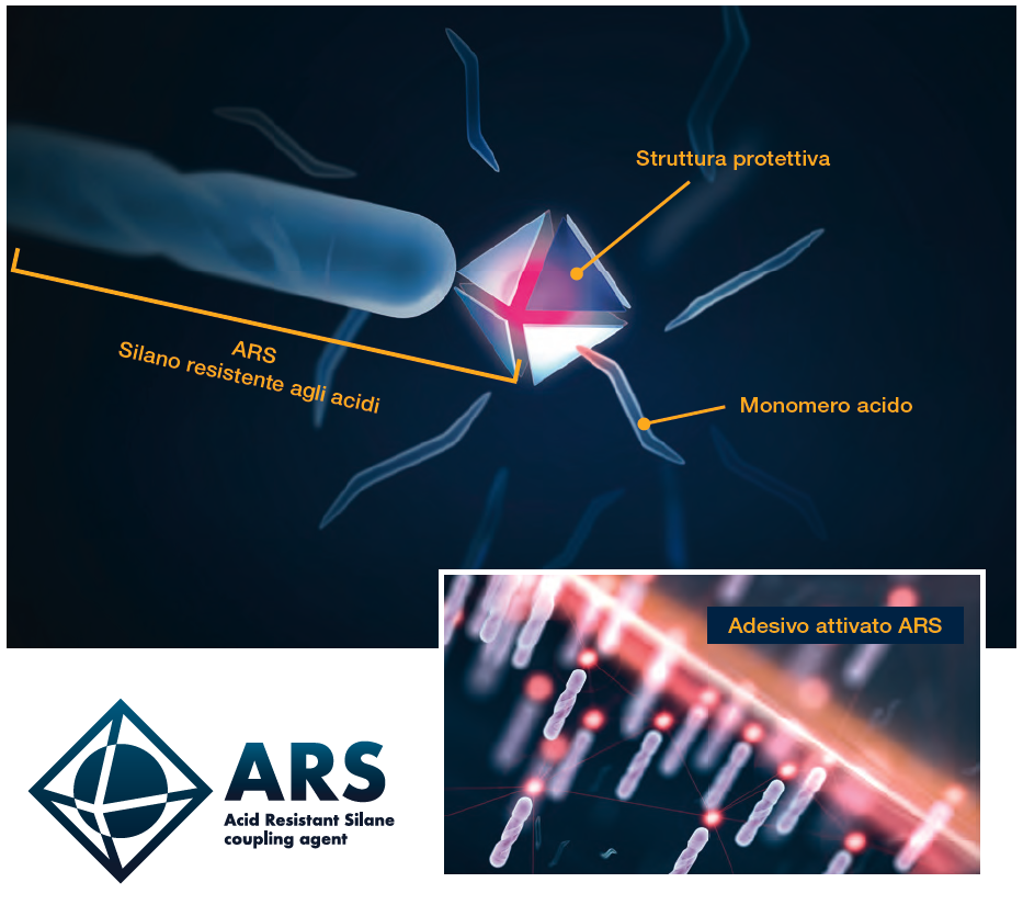 Con l’aggiunta del nuovo silano resistente agli acidi ARS (Acid-Resistant Silane coupling agent) si è ottenuta una composizione chimica estremamente stabile, che permette il condizionamento superficiale di un’ampia gamma di superfici d’adesione con un sistema di facile utilizzo.