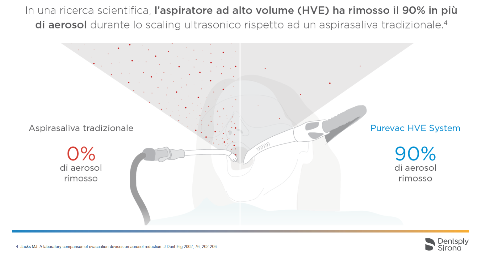 Durante le procedure odontoiatriche, ad esempio lo scaling ultrasonico, l’air-polishing e le procedure di otturazione, gli operatori attualmente utilizzano cannule di aspirazione tradizionali (bassa aspirazione) oppure cannule di aspirazione ad alto volume standard High Volume Evacuation (HVE) associando l’uso dello specchietto e dello strumento specifico alla procedura.