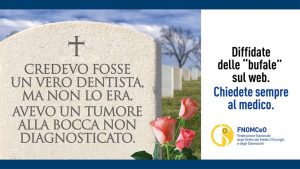 Dal 14 maggio saranno trentuno le città “tappezzate” con quattro diversi manifesti, sei metri per tre, della campagna ‘shock’ promossa dalla Federazione Nazionale degli Ordini dei Medici Chirurghi e degli Odontoiatri (FNOMCeO) per attirare l’attenzione dei cittadini sui pericoli delle fake news in medicina. Ancona, Arezzo, Avellino, Bari, Benevento, Bologna, Bolzano, Cagliari, Caserta, Cosenza, Cremona,...