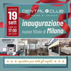Venerdì 19 settembre dalle ore 17:00 unisciti a noi per l’inaugurazione della nuova filiale di MILANO Dental Club! Un luogo dove ogni incontro sarà un’opportunità per condividere sogni, progetti e ispirazioni. Dove potrai toccare con mano alcune nuove attrezzature e rimanere sempre aggiornato grazie alla nostra accogliente sala corsi. Un’esperienza unica perché arricchita dalla nostra passione, dalla nostra esperienza...