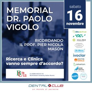 Un evento da non perdere ✅ Memorial Dr. Paolo Vigolo, ricordando il Prof. Pier Nicola Mason. Sabato 16 novembre presso la sede Dental Club di Limena (PD) ℹ Per informazioni e prenotazioni padova@dentalclub.it Tel 049 7662870 Programma 8.30 – 8.45 Registrazione 9.00 Apertura Prof. Edoardo Stellini 9.15 La profondità della...