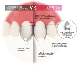Unica Proximal è una matrice in acciaio inossidabile disponibile in uno spessore di 0,03 mm e in due forme (standard e deep) progettate per adattarsi al contorno dei denti anteriori a livello labiale, palatale e prossimale. Le matrici Unica Proximal sono particolarmente indicate per i restauri anteriori che coinvolgono le pareti prossimali (Classe III, IV, incisivi laterali conoidi, chiusure...