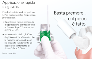 Un trattamento al fluoro che fa di più con meno. Sulla base del feedback dei pazienti e dei professionisti, abbiamo reinventato il tradizionale trattamento al fluoro. Clinpro™ Clear Trattamento al fluoro ha una nuova formula a base di acqua pronta per l’applicazione e consente un efficace assorbimento del fluoro. Potendo mangiare o bere dopo poco tempo...