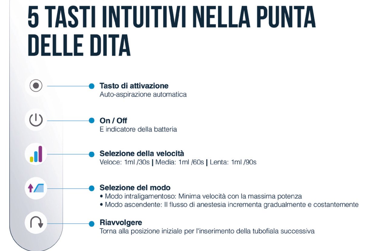 La siringa motorizzata di nuova generazione per gli anestetici dentali.
