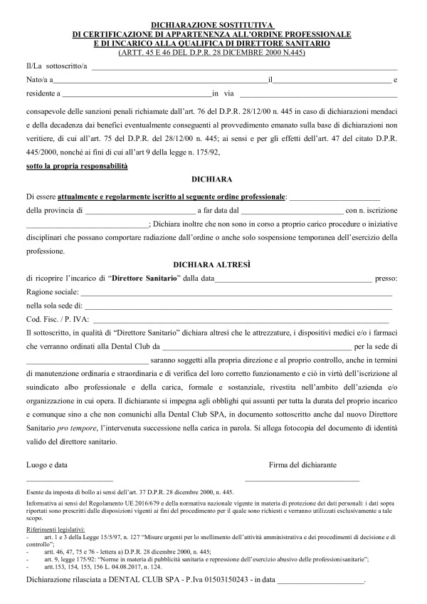 • Dichiarazione sostitutiva di certificazione