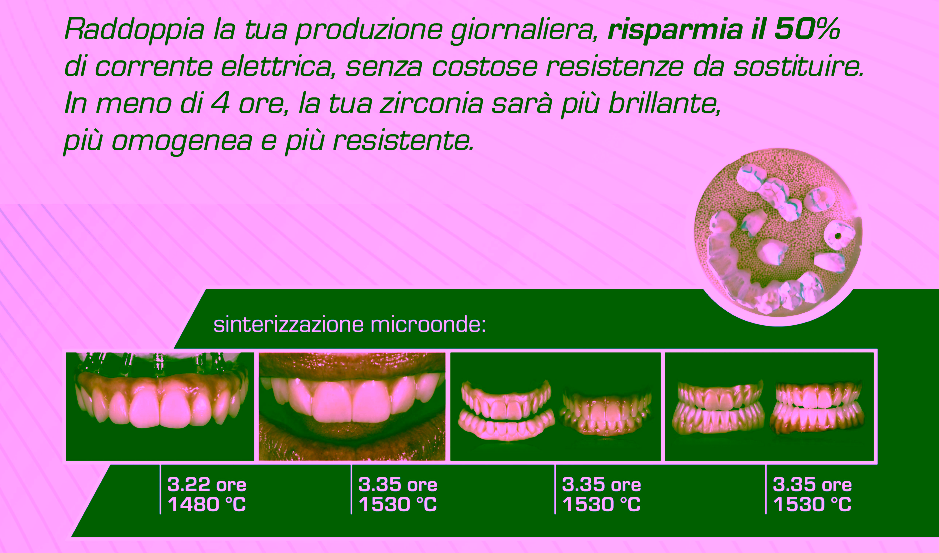 La capacità di produzione aumenta notevolmente. Con la tecnologia convenzionale, un ciclo di sinterizzazione richiede molto tempo, rendendo difficile eseguirne più di uno in un solo giorno. Poiché la tecnologia a microonde è molto più veloce, nello stesso giorno è possibile lanciarne due e anche se ben pianificato fino a tre cicli.
