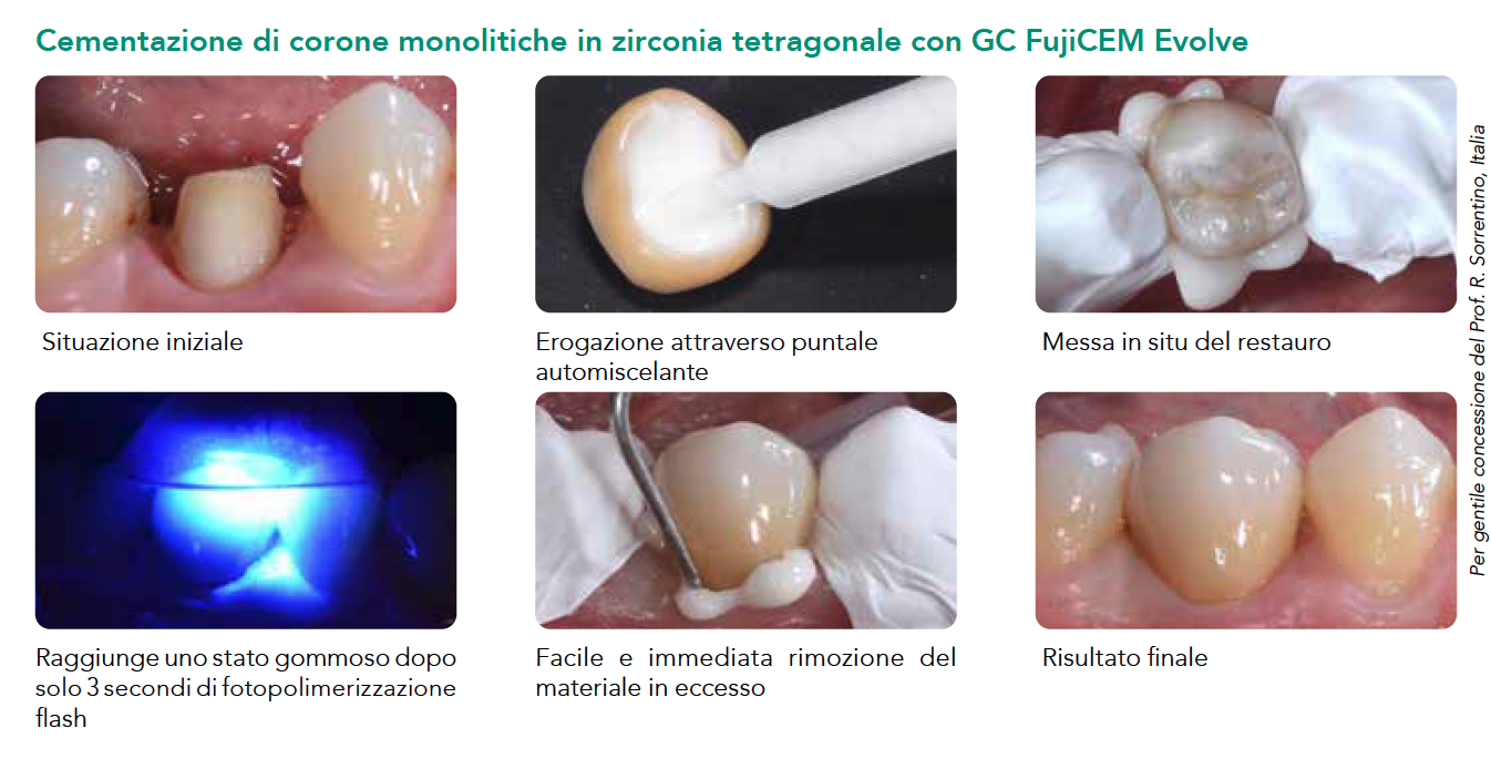 I cementi vetroionomeri rappresentano l’eredità storica di GC e la loro qualità è consolidata, come dimostrano studi indipendenti condotti in tutto il mondo. Per un ulteriore passo in avanti, GC FujiCEM Evolve è stato progettato per essere il tuo partner preferito nella cementazione di restauri in zirconia.