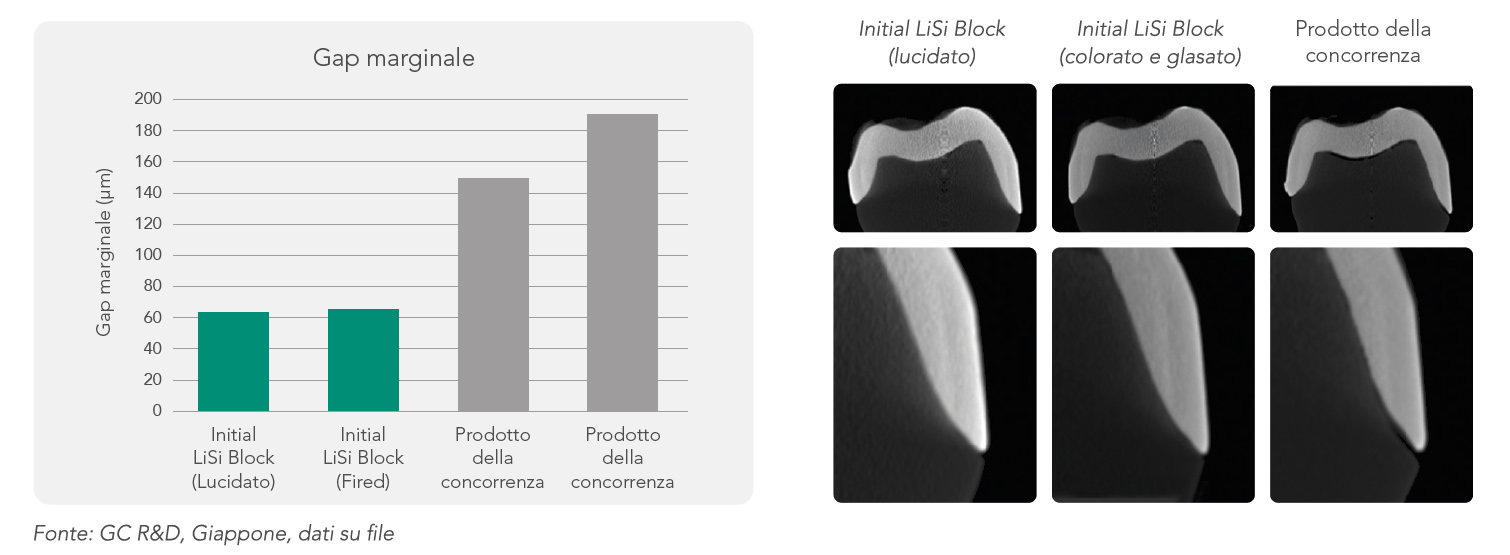 Essendo completamente cristallizzato prima della fresatura, Initial LiSi Block può essere fresato direttamente con margini lisci e precisi. In aggiunta, può essere cotto dopo la colorazione e mantenere una grande precisione marginale.
