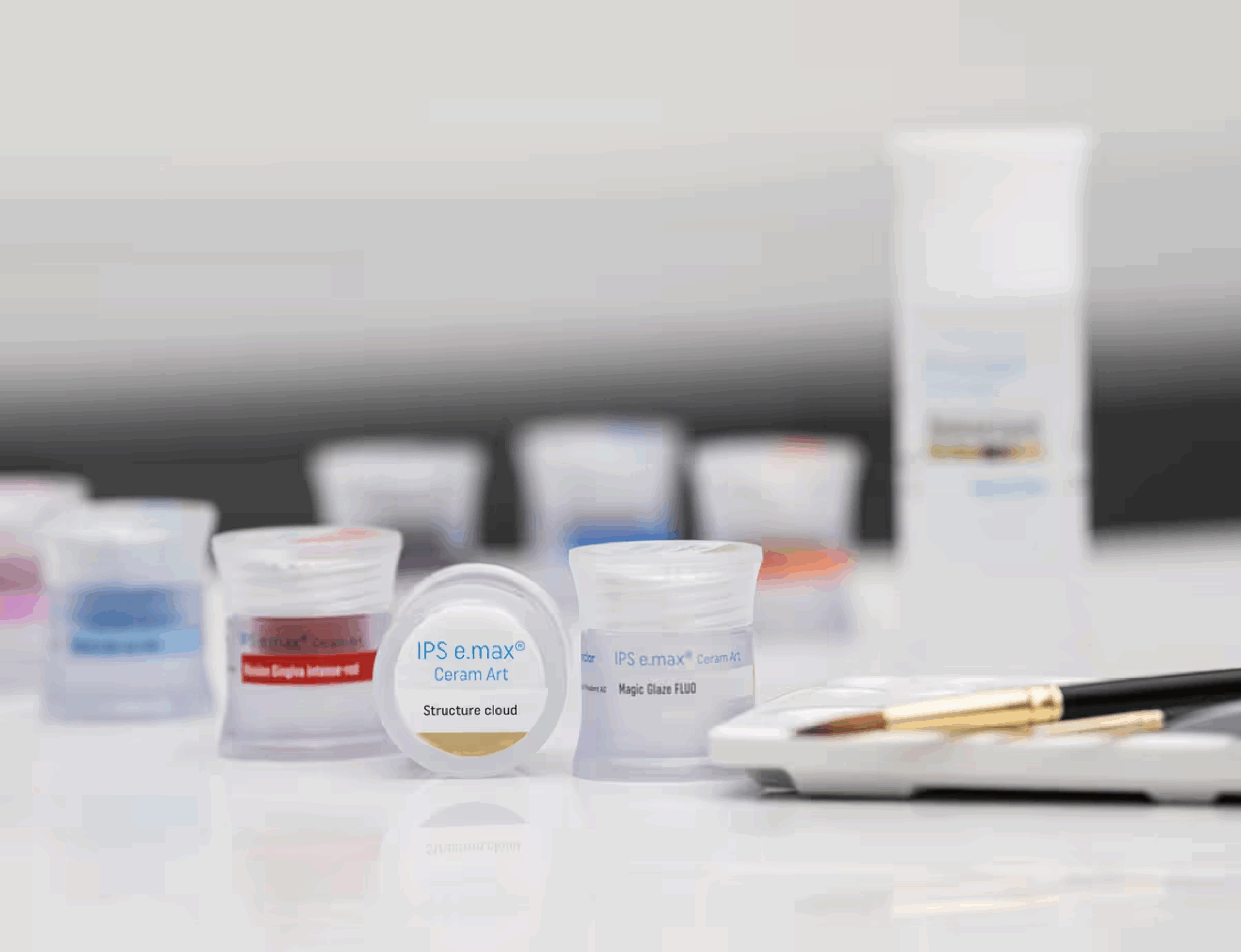 IPS e.max Ceram Art Magic Glaze – Grazie alla consistenza estremamente stabile nella forma, le paste Glaze offrono un’ottima umettabilità e una facile lavorazione. Sono ideali per la tecnica di pittura one-shot e possono essere utilizzate per migliorare la traslucenza, ridurre l’intensità del colore o miscelare più colori. Il risultato: una glasura ineguagliabile.