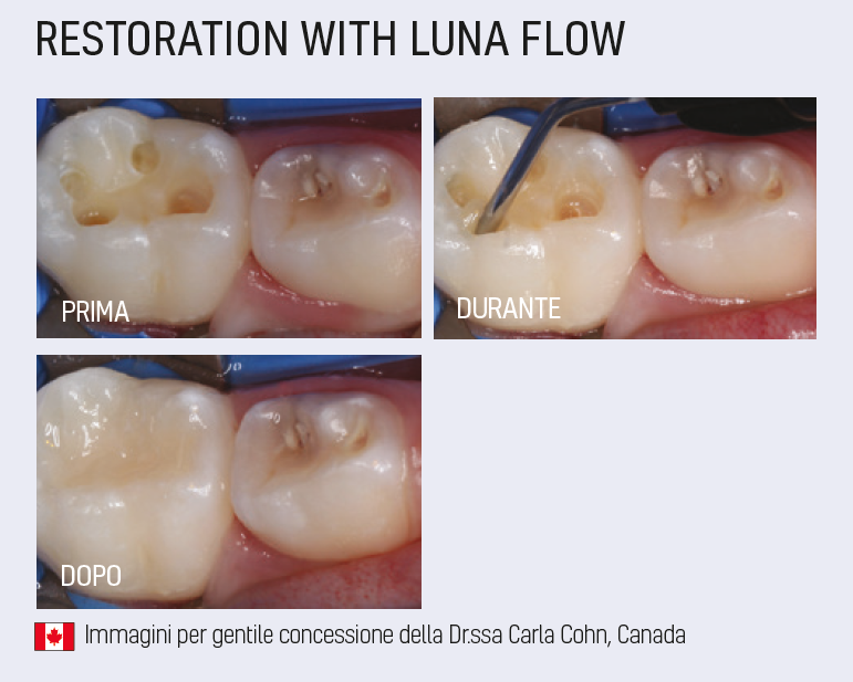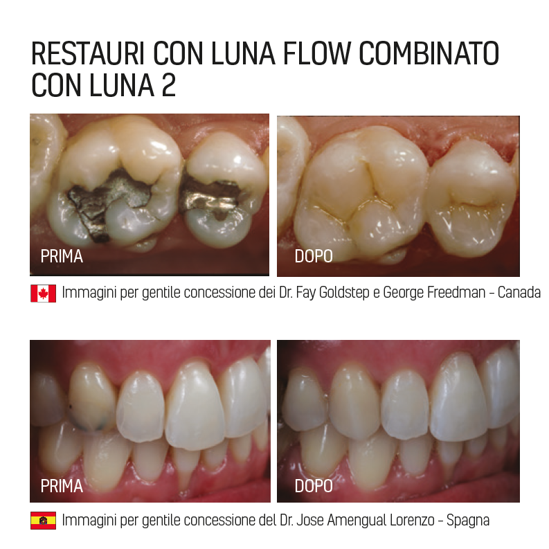 Luna Flow è disponibile in due viscosità per soddisfare le vostre esigenze cliniche. Utilizzare Luna Flow per una maneggevolezza superiore e il massimo controllo durante l’applicazione. Questo bellissimo composito scorre su richiesta, mantiene la sua forma e non risulta troppo viscoso. Per i medici che preferiscono più fluidità, utilizzare Luna Flow LV, opzione a bassa viscosità.