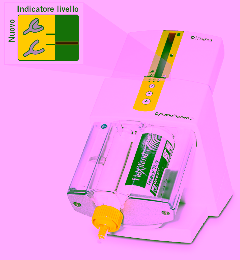 Per raggiungere la massima velocità di miscelazione, risparmiare tempo ottenendo simultaneamente un materiale miscelato omogeneo e privo di bolle, la decisione è facile da prendere: le pratiche cartucce e il funzionale miscelatore Dynamix®speed 2 sono perfettamente abbinati in questo sistema ben congegnato che presenta tutti i vantaggi della miscelazione automatica per i materiali da impronta.