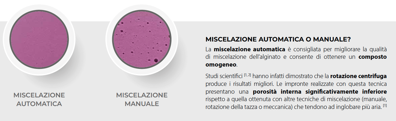 MX-300 è un miscelatore automatico per alginati che migliora significativamente la qualità del miscelato rispetto alla miscelazione manuale, contribuendo a standardizzare il processo e a ottenere risultati consistenti e riproducibili.