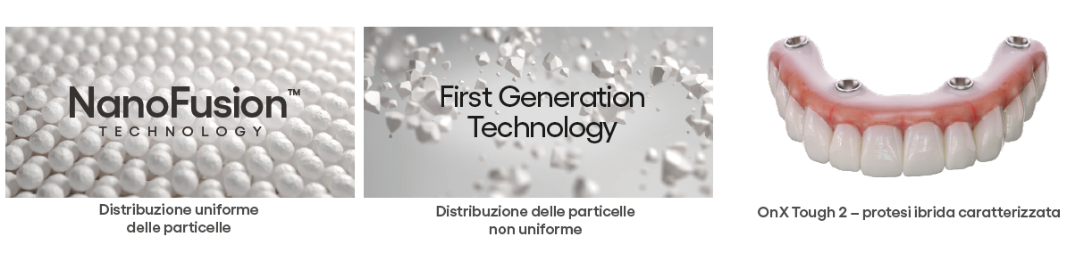OnX Tough 2 consente ai professionisti del settore dentale di realizzare protesi fisse ibride e di competere con le qualità del materiale PMMA fresato.