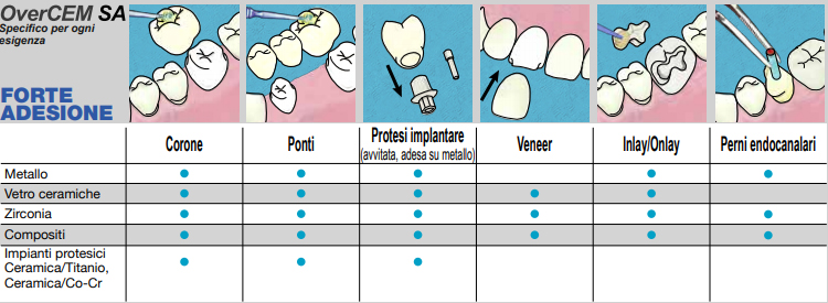 Grazie alle sue caratteristiche, OverCEM SA può essere impiegato per la cementazione di diversi materiali: