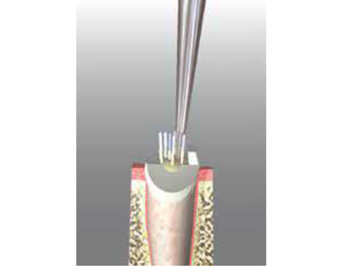 Togliendo il polsino, è possibile adattare i singoli perni sottili alla geometria del canale rendendo possibile una stabilizzazione omogenea dell’intera ricostruzione di moncone paragonata ai perni convenzionali.