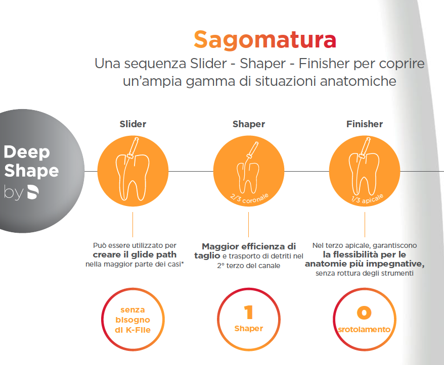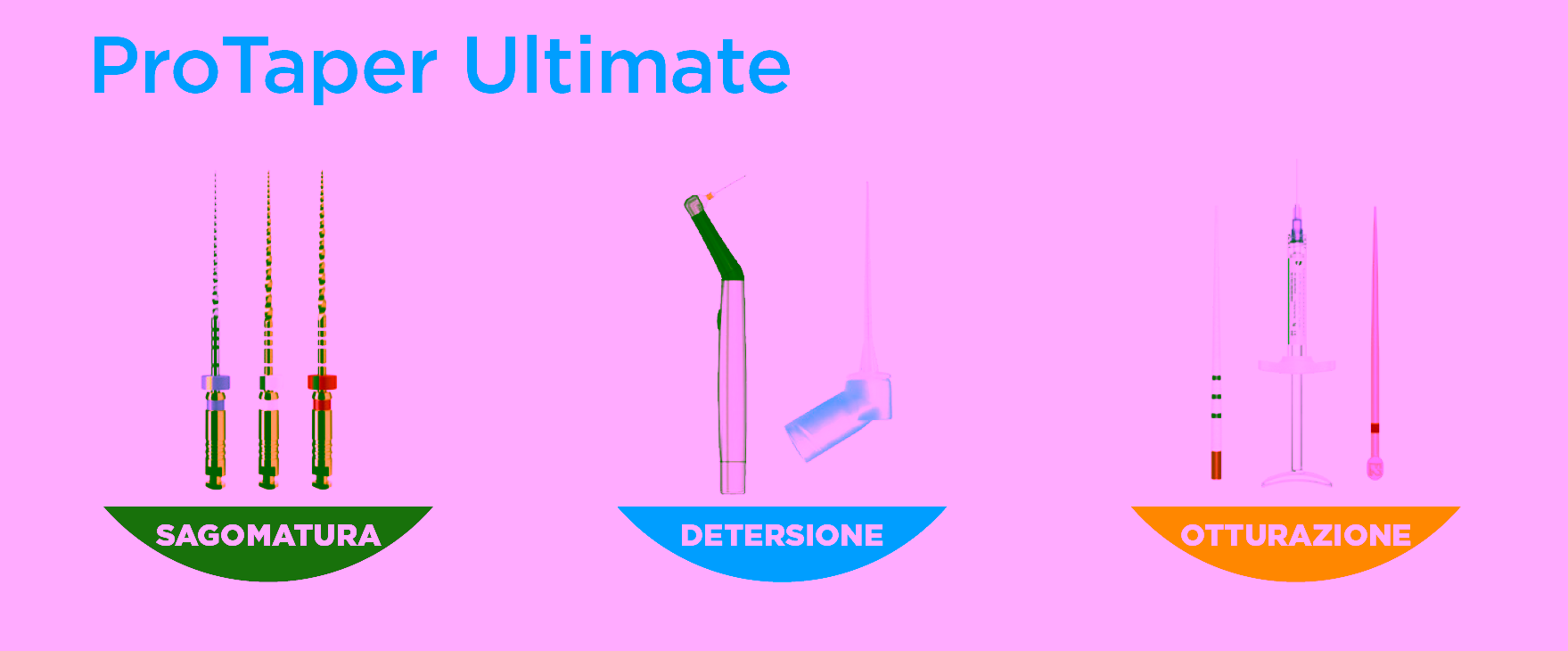 ProTaper Ultimate è l’ultima generazione della famiglia ProTaper, sviluppata da Dentsply Sirona in collaborazione con gli specialisti internazionali dell’endodonzia. ProTaper Ultimate è una soluzione completa che, agli strumenti innovativi, aggiunge una migliore disinfezione e un concetto di otturazione dedicato, per un flusso di lavoro integrato e continuo.