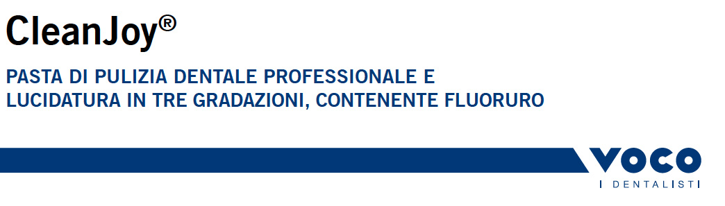 La pulizia dentale professionale, eseguita regolarmente e secondo le necessità individuali, è la base della profilassi di carie, parodontite e perimplantite, in aggiunta all’accurata igiene orale domiciliare. Il sistema di paste per la profilassi e la pulizia CleanJoy® è stato sviluppato per semplificare il trattamento della pulizia dentale e per dare al paziente un’esperienza positiva.