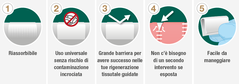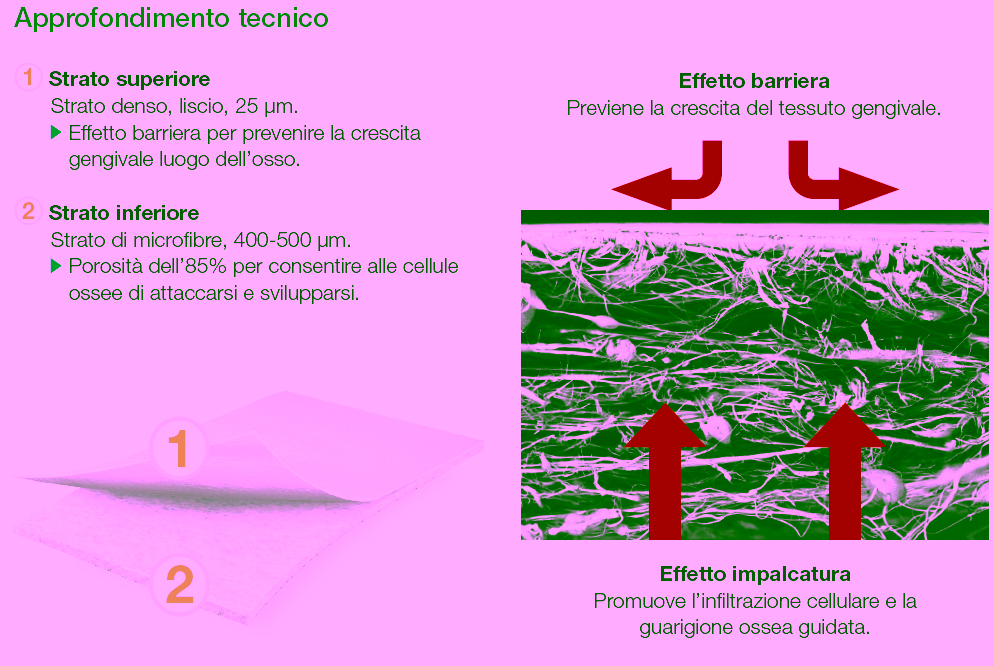 Membrana sintetica a doppio strato riassorbibile per la Rigenerazione Tissutale Guidata.