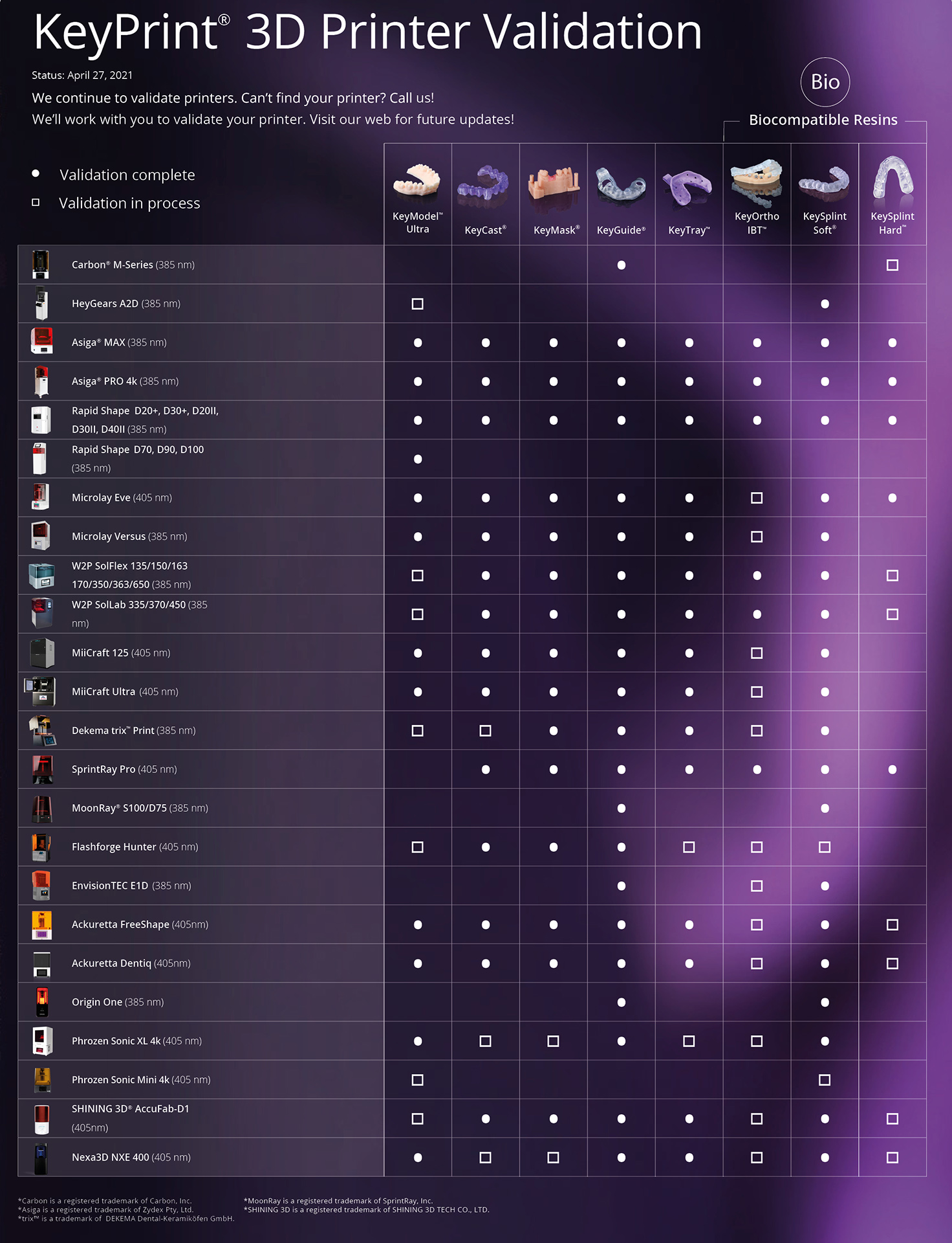 Keystone industries offre un’ampia gamma di resine compatibili in continuo sviluppo con il costante supporto dei produttori di stampanti leader del settore.
