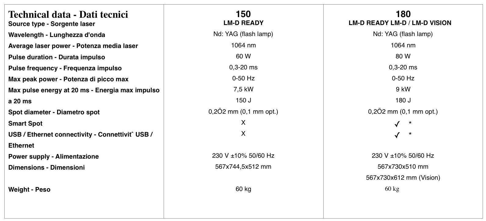 Controlli interamente digitali che consentono un preciso monitoraggio dei consumabili, una elevata stabilità degli impulsi e una maggiore durata della lampada.