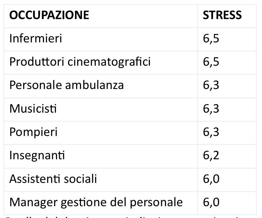 È stata stilata una vera e propria scala internazionale che assegna valori da 0 a 10 alle professioni con l’obiettivo di classificare quelle più stressanti.