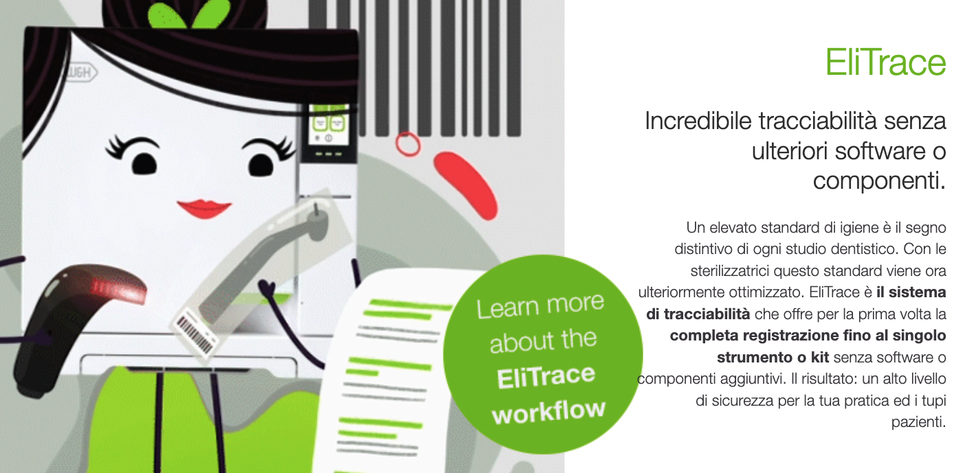 Le sterilizzatrici Lisa dispongono da sempre di un sistema di documentazione completo. Con le sterilizzatrici Lisa abbiamo raggiunto anche un livello più alto nell’ambito della tracciabilità: EliTrace offre una documentazione completa del processo di sterilizzazione fino ai singoli strumenti o al kit. Le sterilizzatrici Lisa soddisfano pertanto già oggi eventuali requisiti normativi futuri. Nel contempo è possibile dimostrare ai pazienti gli alti standard igienici dello studio dentistico direttamente sull’unità esterna: per un rapporto tra medico e paziente fondato sulla fiducia.