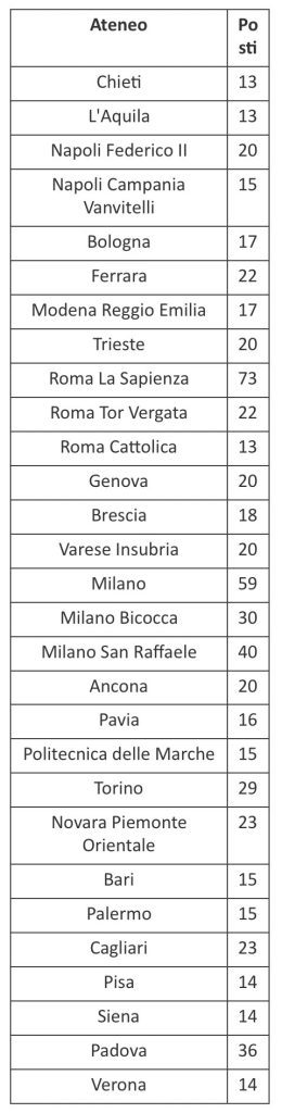 Con 183 posti la Lombardia è la Regione con il numero di posti più alto seguita dal Lazio (108) e dall’Emilia Romagna (56). Le prove di ammissione saranno uguali per tutte le professioni sanitarie e saranno svolte negli atenei sede di corso l’11 settembre.